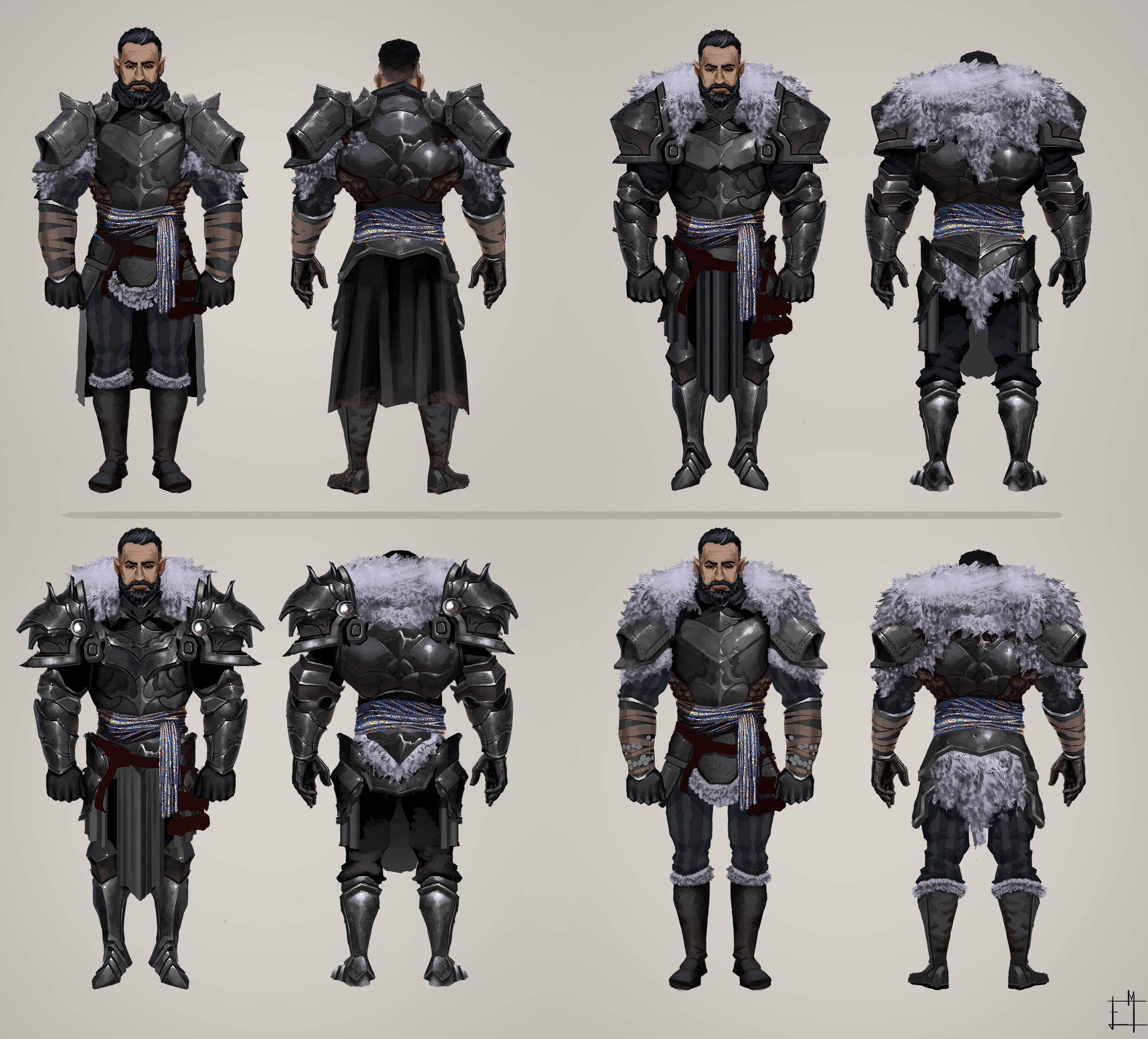 Lopez is almost always wearing his armor and helm. His swords and shield are always nearby and he considers his gear to be his identity.